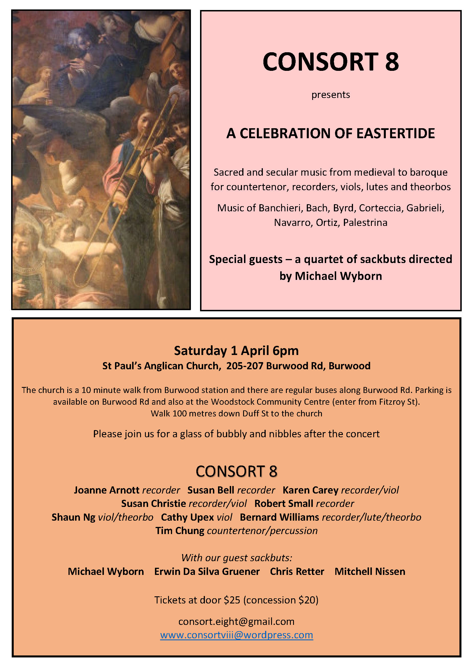 Sydney’s unique early music ensemble, Consort 8 encompasses consorts of recorders and violas da gamba, lutes, theorbos, voice and percussion.